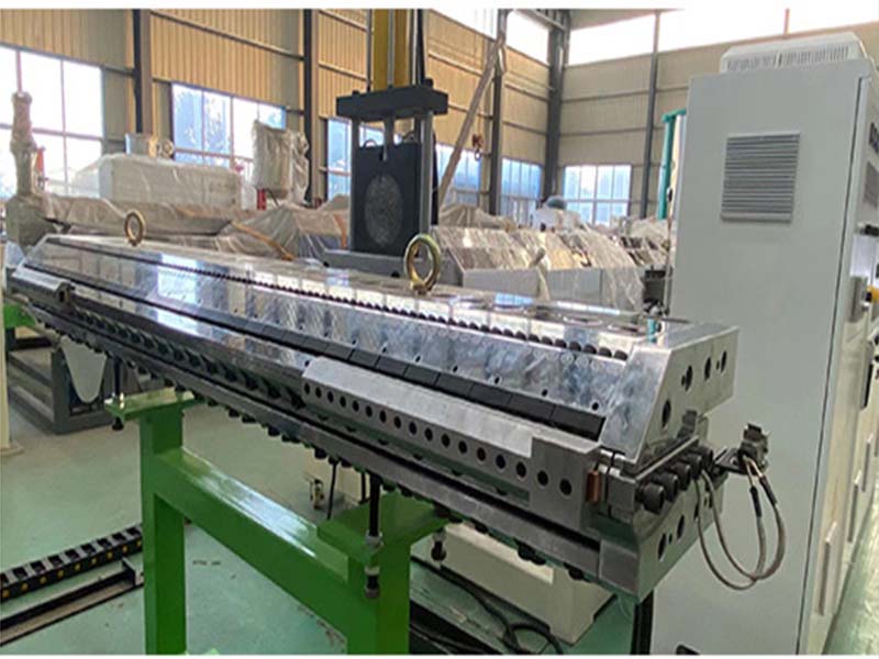 該生產(chǎn)線采SJ-150-35比1單螺桿排氣擠出機(jī)、西門子電機(jī)、高扭矩硬齒面減速機(jī)、液壓換網(wǎng)器、T型衣架式可調(diào)模具、立式三輥壓光機(jī)、并可根據(jù)客戶需求配備在線覆皮革裝置、三合一水溫機(jī)、不銹鋼冷卻托架裝并裝有寬幅可調(diào)切邊刀、橡膠輥牽引機(jī)、自動(dòng)定尺剪板機(jī)。生產(chǎn)線采用立體電控柜:日本歐姆龍智能溫控儀、西門子低壓電器、國(guó)內(nèi)外馳名變頻器。所生產(chǎn)的板材經(jīng)二次熱成型后,主要于汽車儀表板、車門內(nèi)裝板、代步車、高爾夫汽車等外殼;還可用于各種拉桿箱、行李箱等。