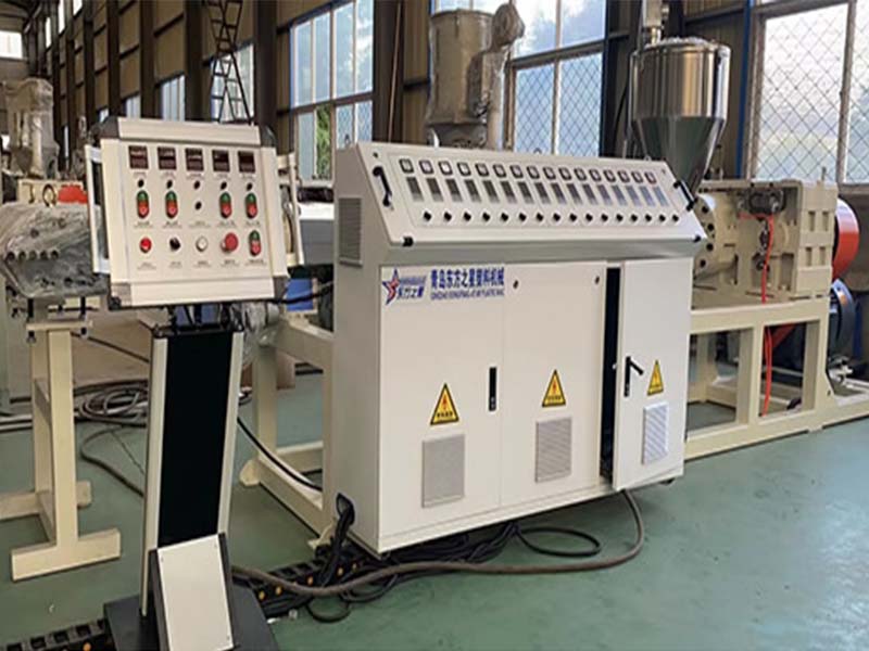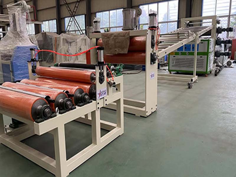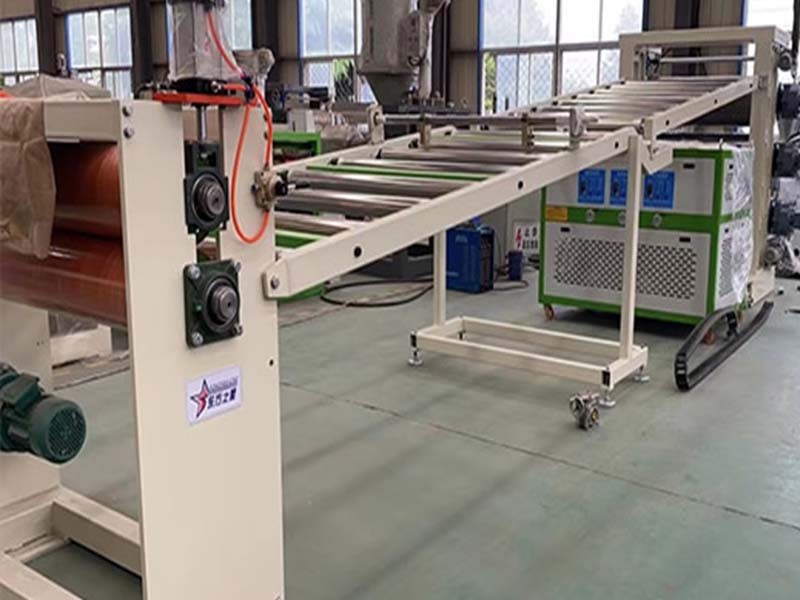 PE化學(xué)發(fā)泡片生產(chǎn)線:該設(shè)備采用120-30比1單螺桿擠出機(jī)、液壓自動(dòng)換網(wǎng)器、可調(diào)模具、立式三輥壓光機(jī)、三合一輥筒恒溫機(jī)、不銹鋼冷卻托架裝并裝靜電處理裝置及有寬幅可調(diào)的合金切邊刀、橡膠輥牽引機(jī)、雙工位氣漲軸收卷機(jī)。全線采用:日本歐姆龍智能溫控儀、施耐德低壓電器、國(guó)內(nèi)馳名品牌變頻調(diào)速器。