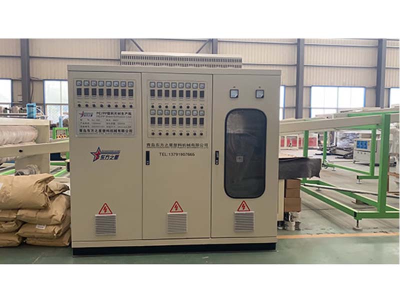 PP三層共擠片材生產(chǎn)線:可生產(chǎn)寬度750-1500毫米、厚度0.2-2毫米、單層/雙層/三層的塑料片材。該設(shè)備采SJ90-33/1和SJ75-30/1單螺桿擠出機(jī)、液壓自動換網(wǎng)器、A+B+A三層共擠分配器、T型彈性??诳烧{(diào)模具、斜45度三輥壓光機(jī)、三合一水溫機(jī)、不銹鋼冷卻托架并裝有寬幅可調(diào)切邊刀、橡膠輥牽引機(jī)、雙工位氣漲軸收卷機(jī)。生產(chǎn)線采用符合人體工位學(xué)的電控柜:歐姆龍智能溫控系統(tǒng)、西門子低壓電器、國內(nèi)外馳名品牌變頻調(diào)速器。